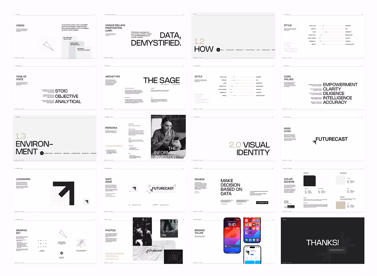 Trouver l’équilibre entre rigueur analytique et modernité émotionnelle — une marque qui inspire la confiance, tout en restant futuriste et élégante.