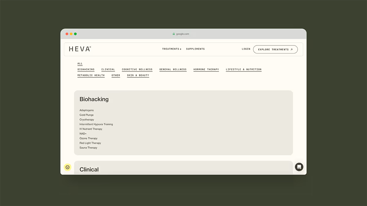 Heva Health est une plateforme de santé numérique avec laquelle je collabore régulièrement via Wanderland. J’interviens sur la maintenance et le développement pour améliorer l’expérience utilisateur et la performance du site.